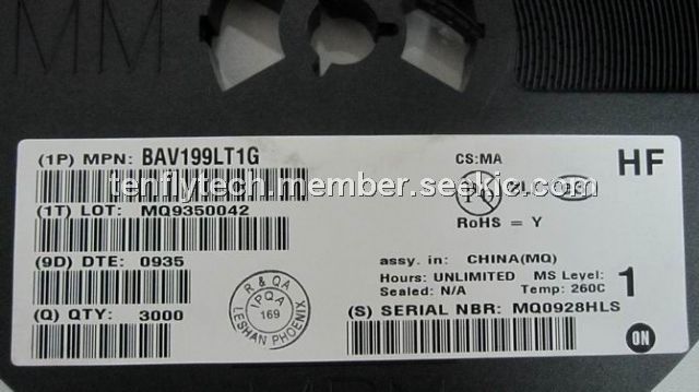 BAV199LT1G features: (1)Low Leakage Current Applications; (2)Medium Speed Switching Times; (3)AEC.Q101 Qualified and PPAP Capable; (4)S Prefix for Automotive and Other Applications Requiring Unique Site and Control Change Requirements; (5)These Devices are Pb-Free, Halogen Free/BFR Free and are RoHS Compliant.